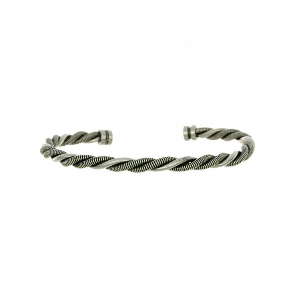 Jonc ouvert twist en corde de basse argentée vieillie pour homme. Fabrication dans les ateliers de Marseille.