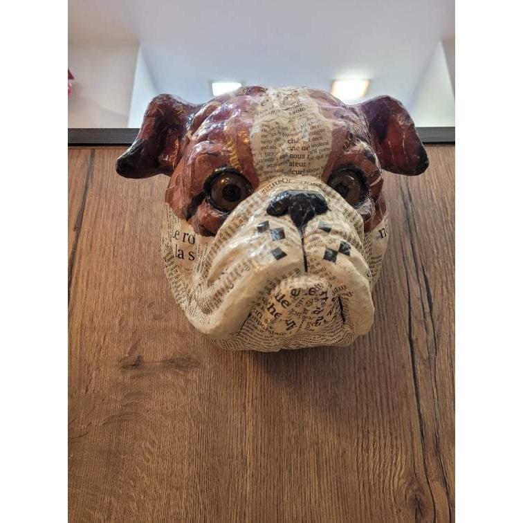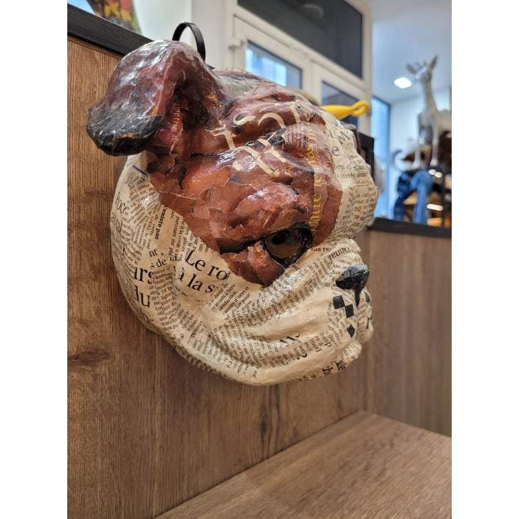 Trophée Bouledogue français en papier mâché - Aude Goalec et Nicole Jacobs