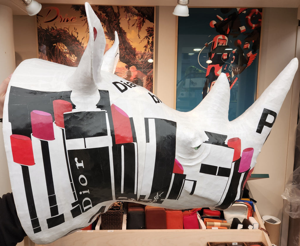 Trophée de Rhinocéros en papier mâché - Aude Goalec et Nicole Jacobs
