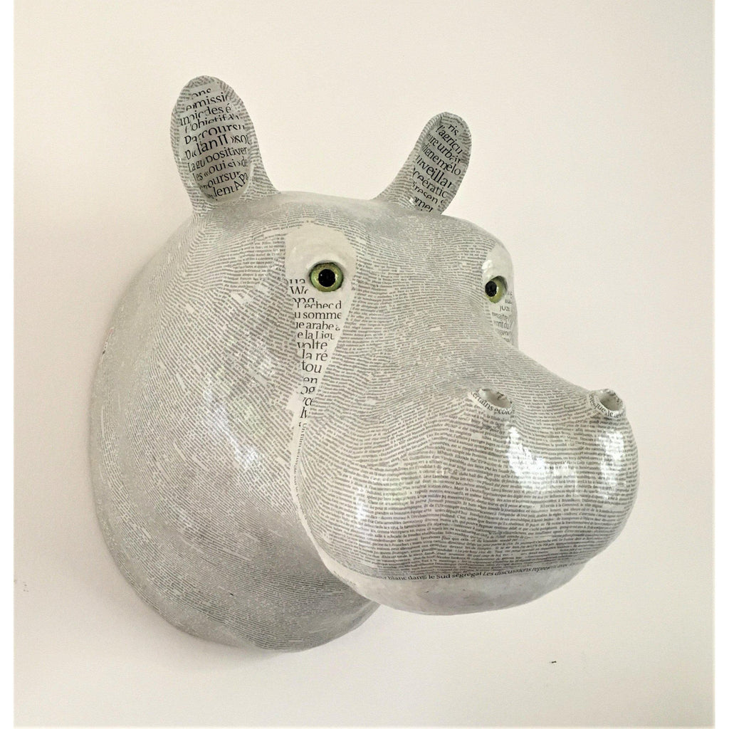 Trophée d'Hippopotame en papier mâché - Aude Goalec et Nicole Jacobs