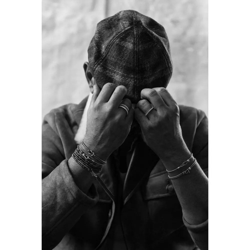 Jonc ouvert twist en corde de basse argentée vieillie pour homme. Fabrication dans les ateliers de Marseille.