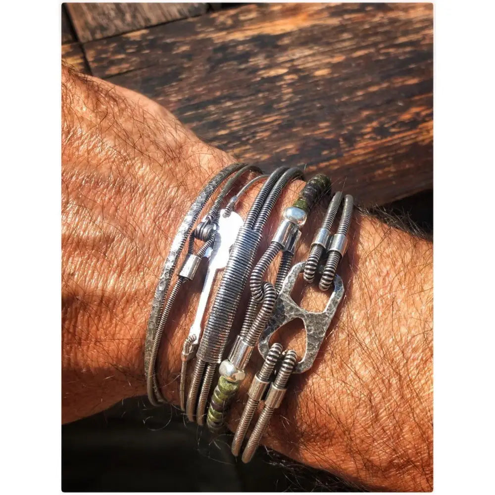 Jonc ouvert twist en corde de basse argentée vieillie pour homme - Sing a Song