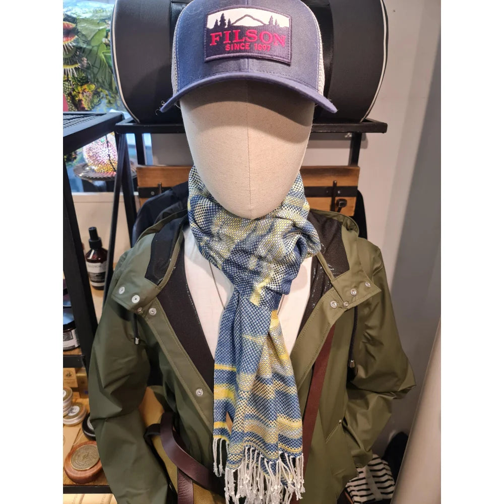 Écharpe en coton indigo bleue et jaune - Il Bussetto