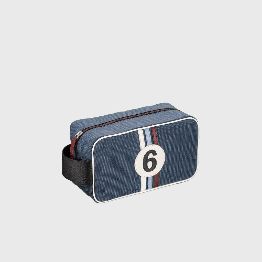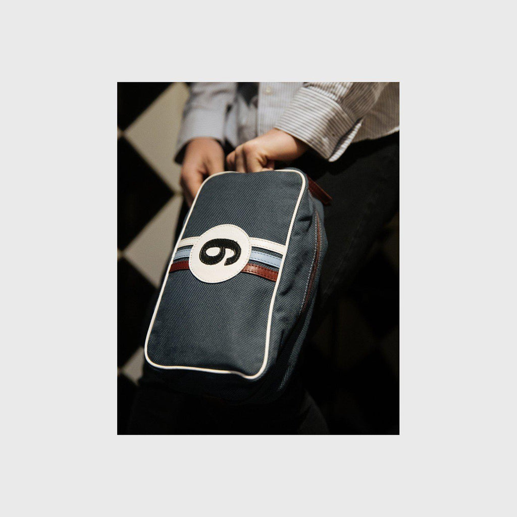 Trousse de toilette bleue en tissu recyclé et cuir - N°6 - Bobby - Entre 2 rétros