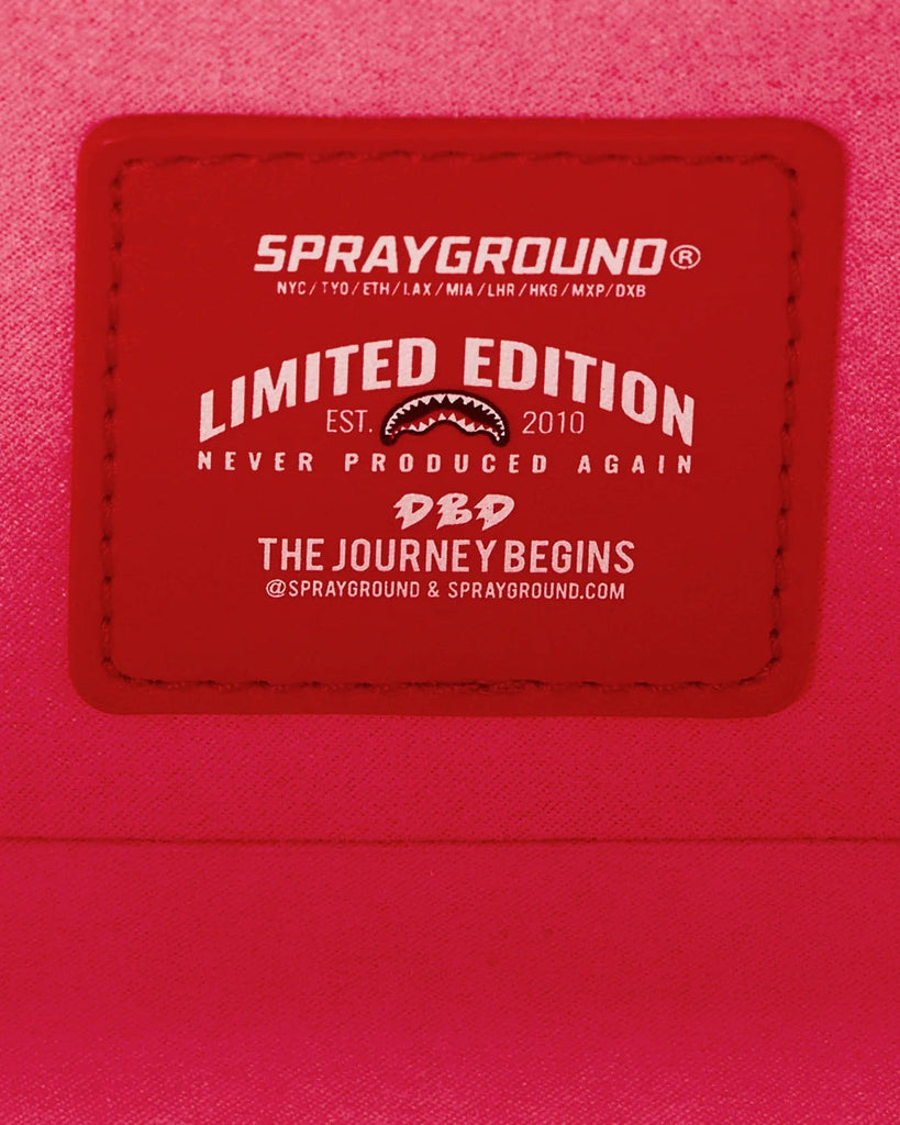 DÉTAILS DU PRODUIT :100% PU - embossé avec le monogramme SpraygroundDimensions : 11" x 7" x 7"Doublure en velours rouge, étagères à plusieurs niveaux, plateau amovible, miroir intérieur.