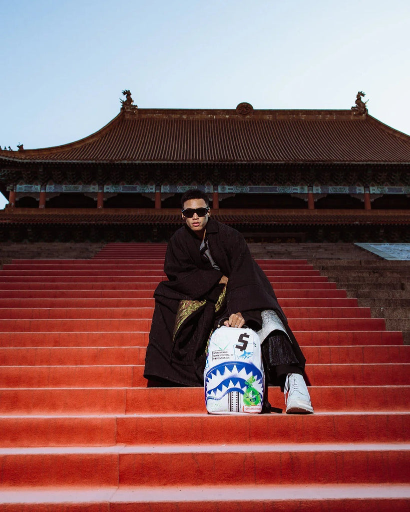 Sac à dos - SHARK CENTRAL STENCILS WHITE DLXSV BACKPACK - SPRAYGROUND